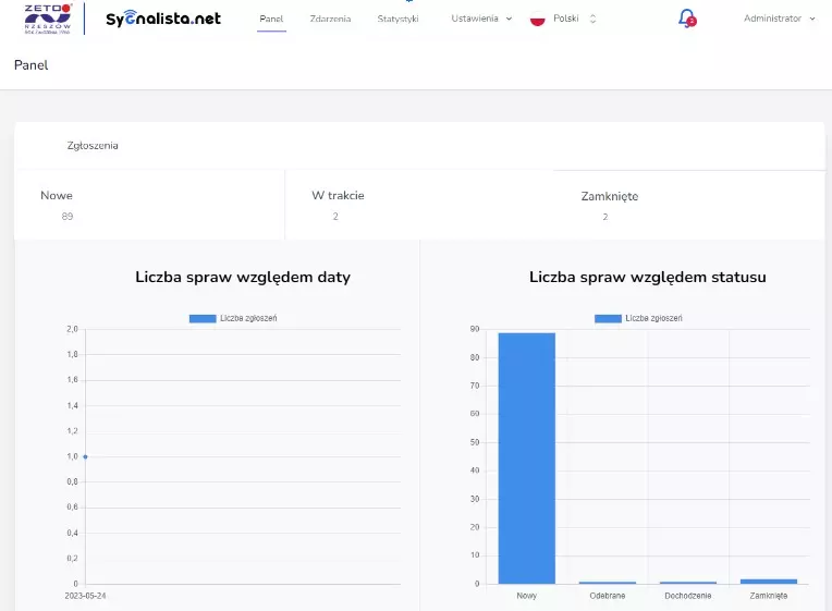 13) Panel główny – użytkownik/administrator może zobaczyć podsumowanie statystyk na panelu głównym.