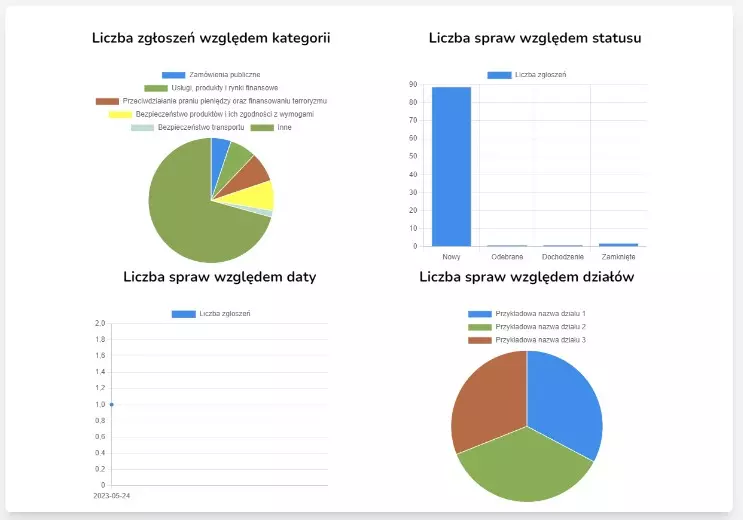 12) Statystyki – użytkownicy mają dostęp do danych statystycznych dotyczących zgłoszeń, takich jak liczba zgłoszeń, średni czas rozwiązania, najczęstsze problemy, itp.